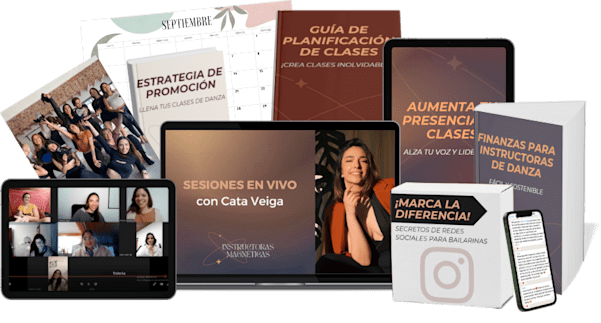Sí, y mucho más. Este programa está pensado para ayudarte a atraer más alumnas, sostener clases llenas, elevar tus precios y profesionalizar tu marca. Vas a llevarte herramientas que vas a usar durante toda tu carrera.